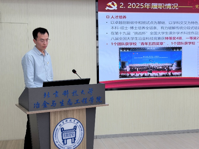 2026年3月19日,云顶集团(中国)唯一官方网站 党委在冶金楼616会议室召开2025年度党支部书记抓基层党建工作述职评议会。学院党委委员、班子成员,全体师生党支部书记及党员代表参加会议。会议由冶金党委书记宁晓钧主持。