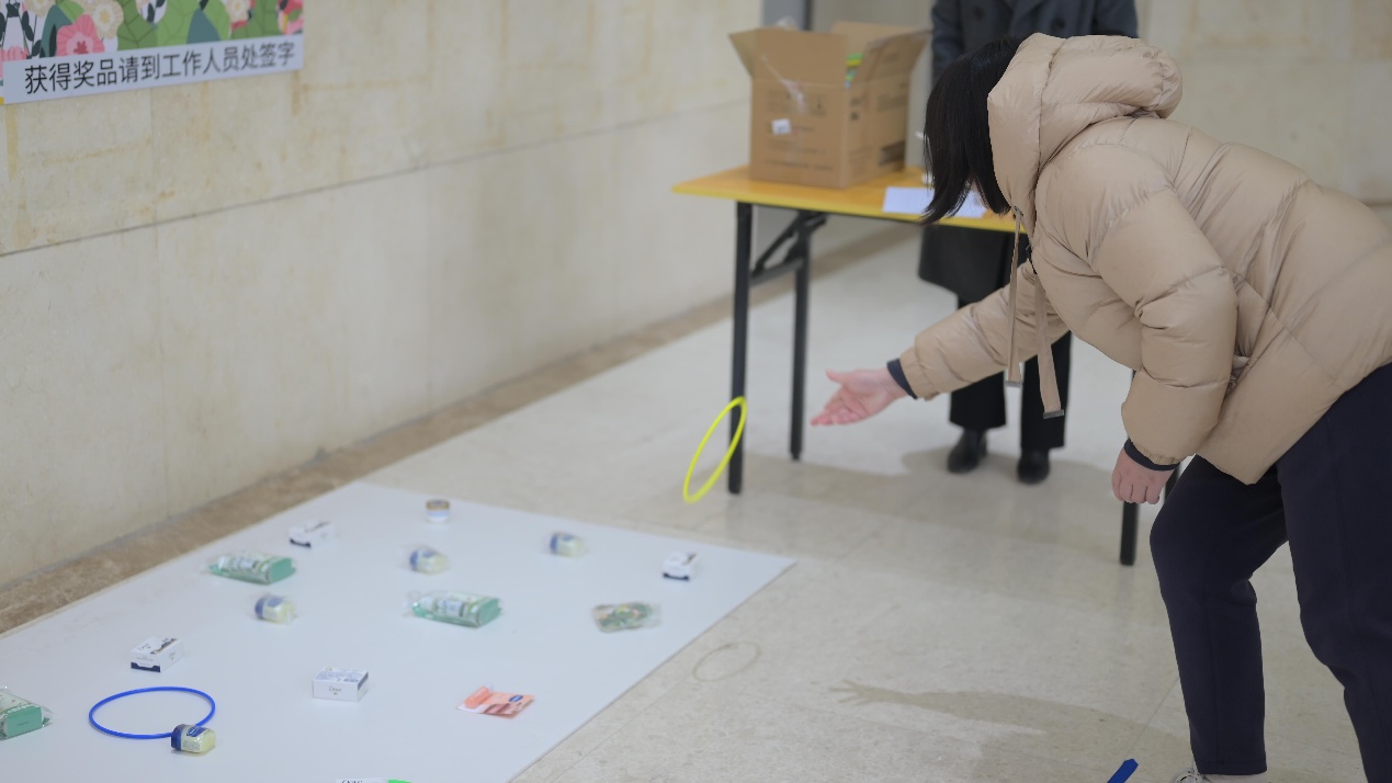 一大早,冶金楼大厅热闹非凡。“春暖花开,‘圈’住快乐”套圈活动吸引了众多师生参与,大家热情高涨,踊跃尝试,现场洋溢着欢乐的节日氛围。