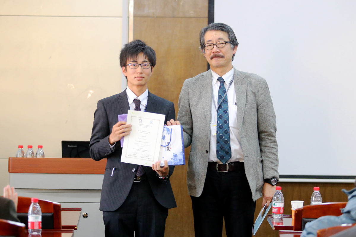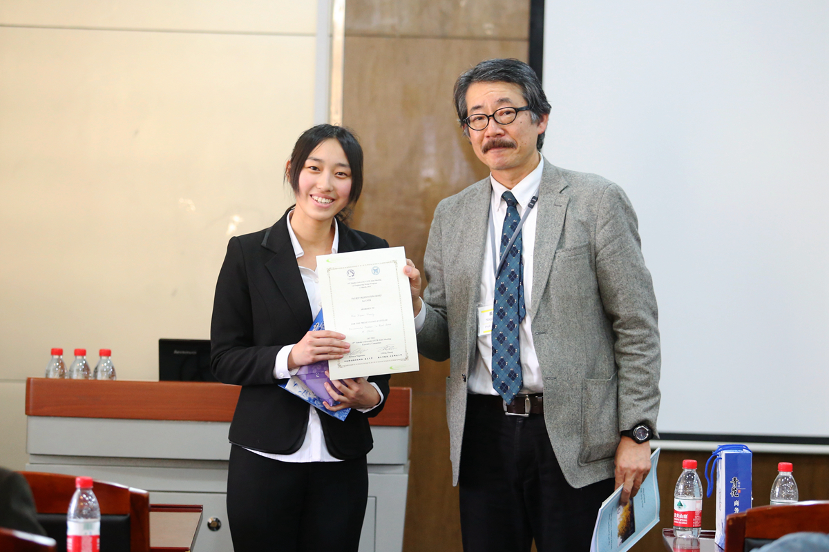 开幕式结束后,两校青年学生开展交流活动。在第一分会场,28名两校学生代表在长坂也教授的主持下依次上台,向在场同学们汇报了研究学习中的收获心得。日本东北大学工学部副教授伊丽莎白,云顶集团(中国)唯一官方网站 副院长李宏煦、陈骏,青年教师杨文等参加学生研习交流活动并进行指导。日方学生渡边千宽引导在场的同学们走进五彩斑斓的金属薄膜色彩世界,西村肇伦介绍了利用花瓣色素制成太阳能电池的原理,山田加奈子展示了用电化学方法在钛金属表面绘画的全过程,日方学生的创意和思路赢得中方师生的赞赏。我校学生张亚菲运用电镜图片介绍了非金属夹杂物对钢铁疲劳性能的影响,李瑶介绍了对高铝低密度钢组织和性能的研习情况,黄心眉以科学视角介绍了中国农村的环境污染现状,中方学生的踏实和细致赢得了日方师生的肯定。在交流活动中,同学们认真聆听,踊跃提问,相互学习,取长补短。长坂也教授为获得本次交流活动优秀奖的两校学生颁奖。