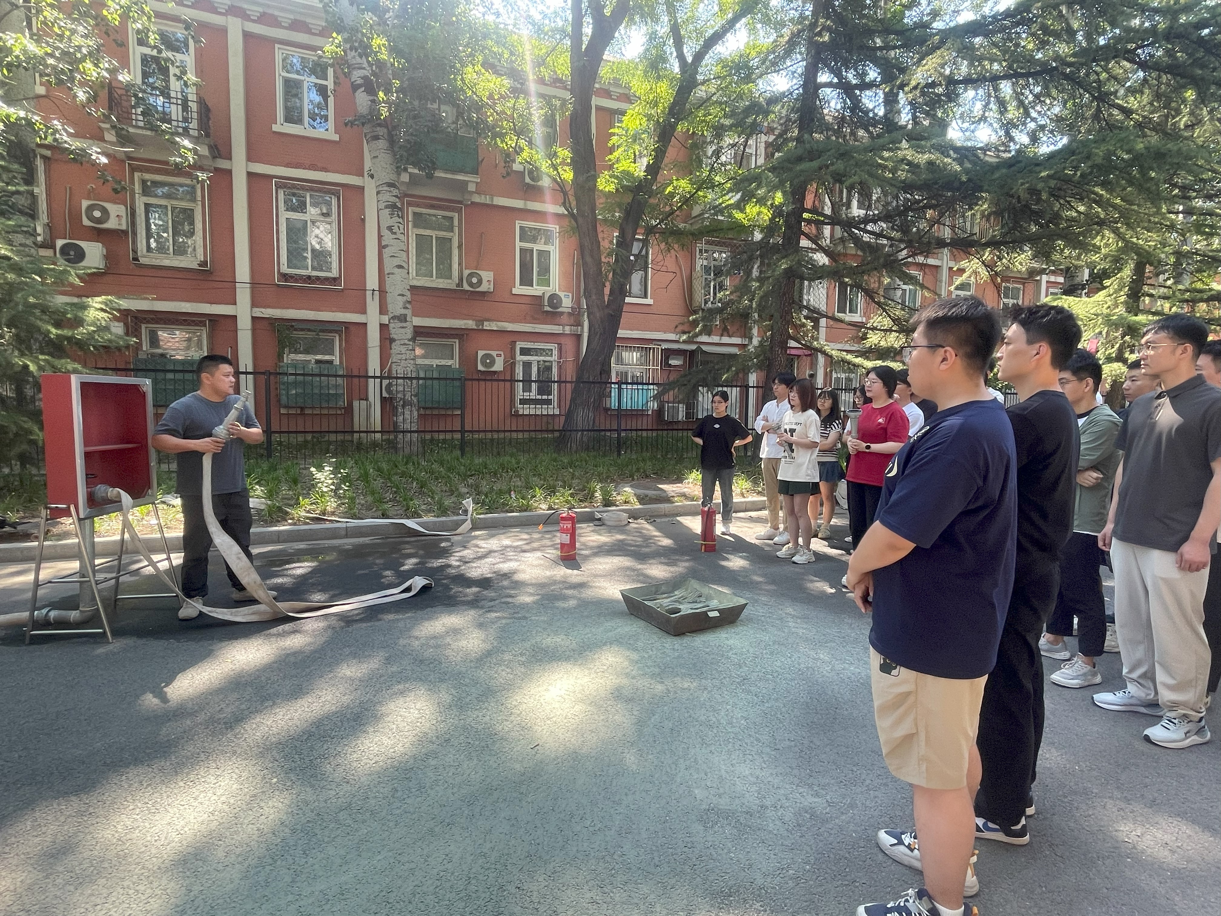 培训在工程训练中心东门进行,目的是通过培训使参训人员能够使用灭火器和消火栓,达到“小火会用灭火器,大火会用消火栓”的消防基础技能要求。