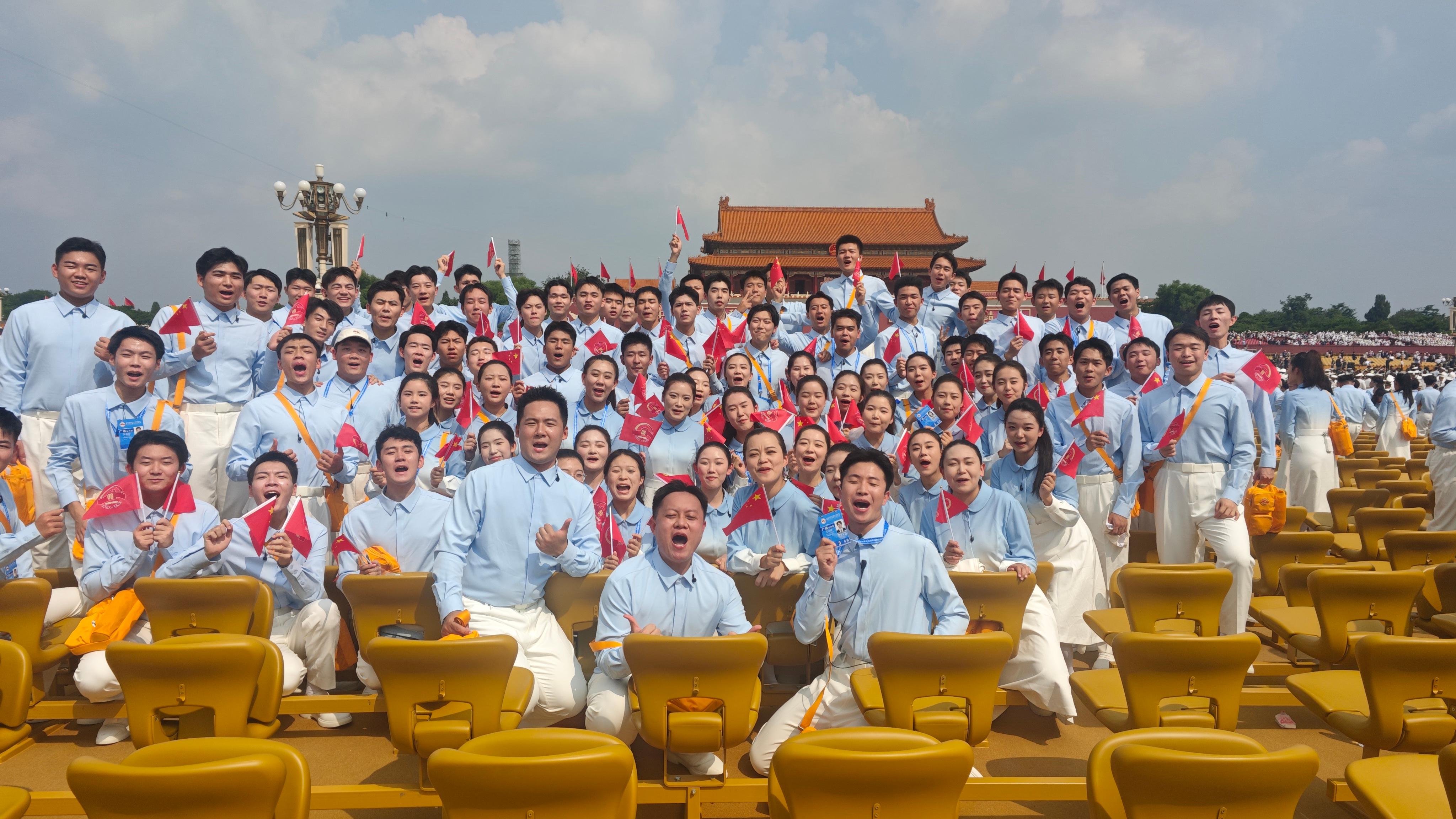 9月3日上午,纪念中国人民抗日战争暨世界反法西斯战争胜利80周年大会隆重举行,李福龙、宫平、温俊辉、江秉泽4名冶金青年的身影定格在广场合唱团的队列中中,他们以青春之声传承历史记忆,用赤诚之心唱响时代强音。