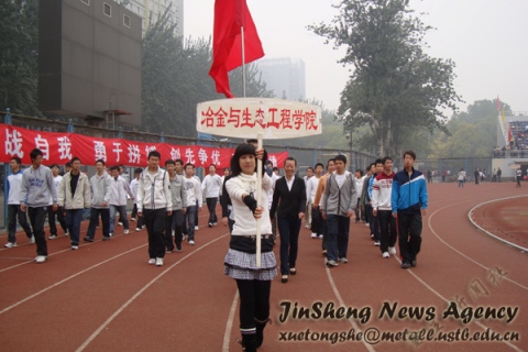 在茫茫的薄暮中,北京科技大学新生运动会慢慢落下帷幕。主席台前围满了我们可爱的同学们,每项奖项的宣布都伴随阵阵呐喊声,令人振奋。让我们为新生们喝彩。