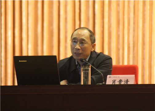 于12月15日在我校教职工礼堂开展“社会主义核心价值观教育”系列报告会活动。清华大学马克思主义学院副院长肖贵清教授以“社会主义核心价值解读”为主题,为学院400余名师生带来一场精彩生动、富于启发的报告。