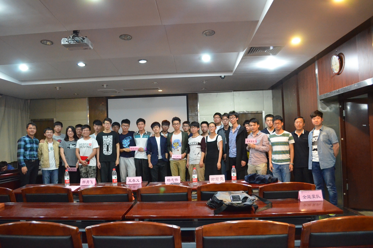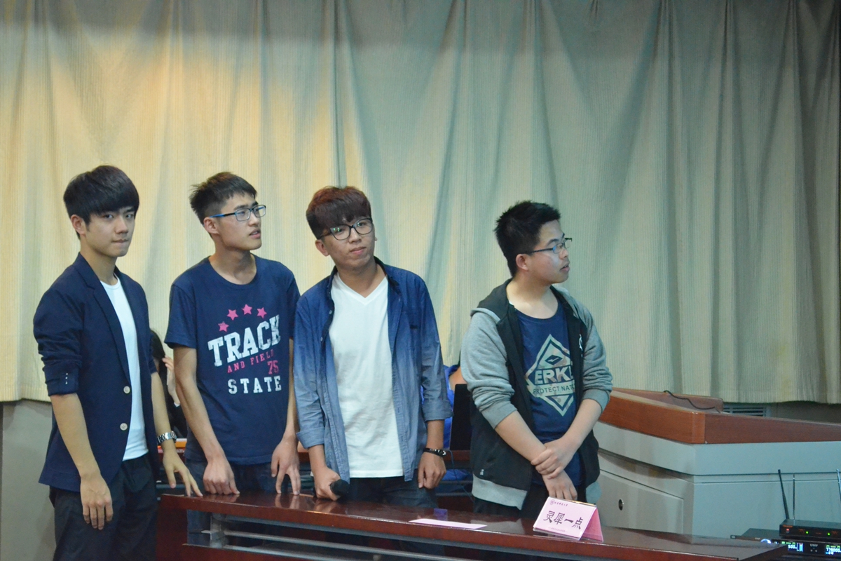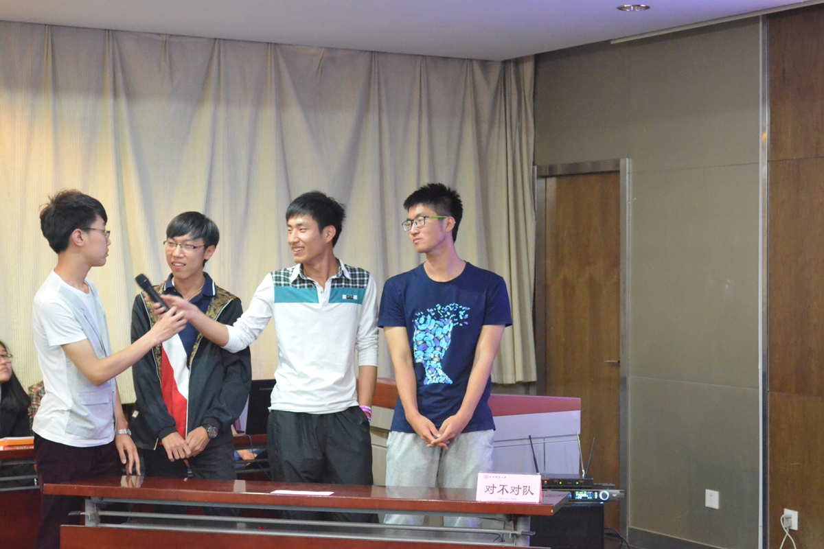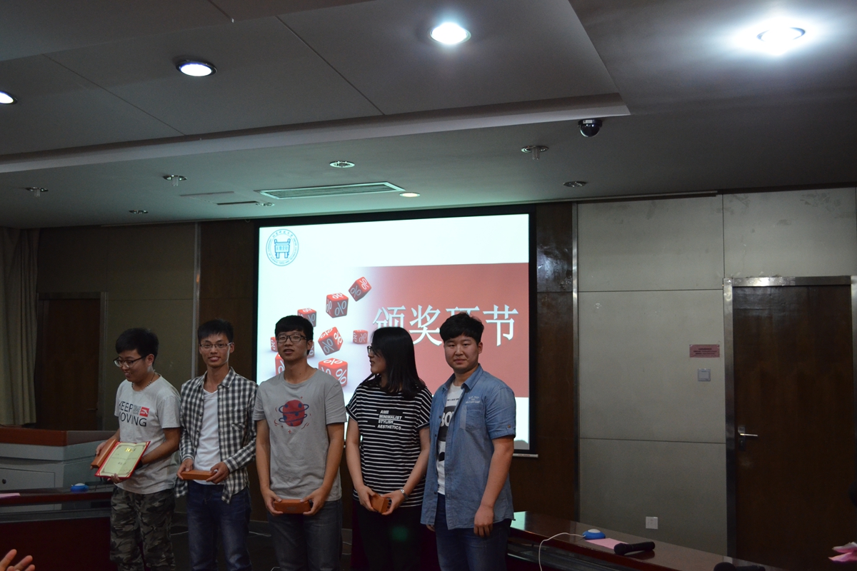 在颁奖环节,谢宏亮同学为“人气之星”团队颁奖;郝勇飞老师为季军团队1306班“霍霍霍霍队”颁奖;杨志伟老师为亚军团队1503班“对不对队”颁奖;王春义老师为冠军团队1406班“小飞熊EX队”颁奖。