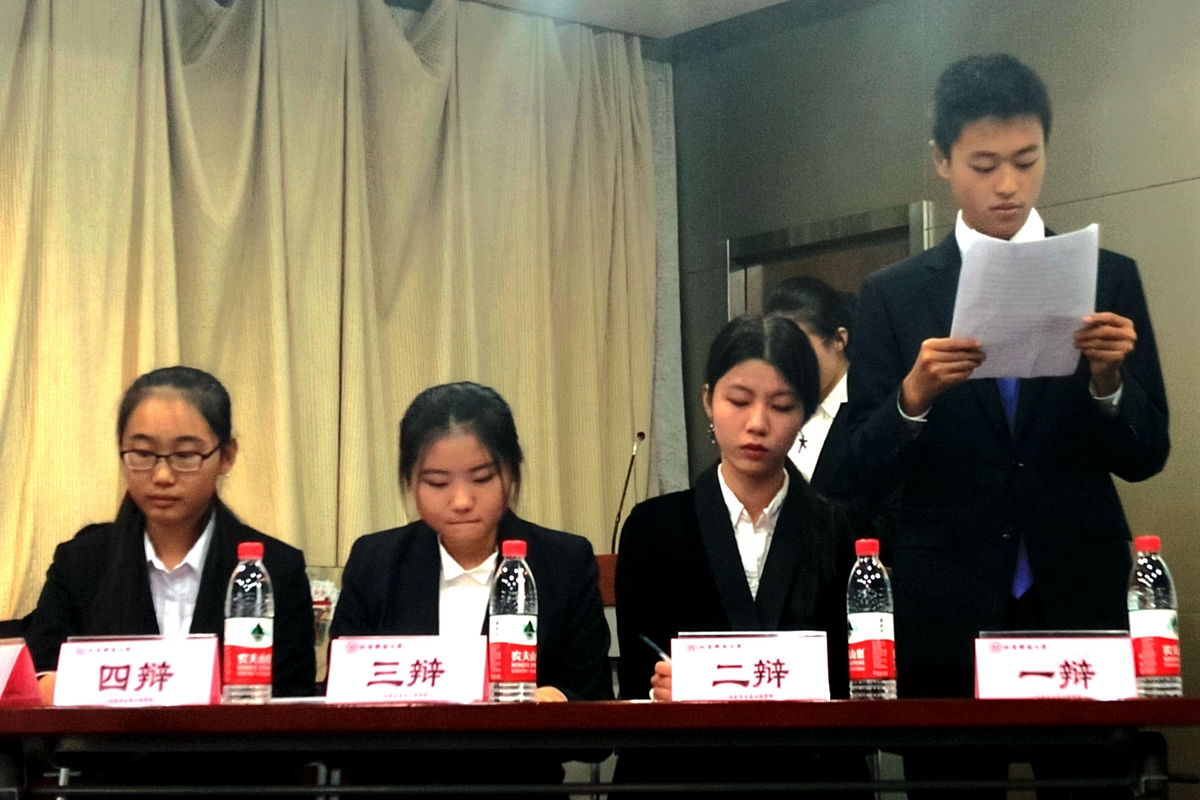 10月22日晚19点,云顶集团(中国)唯一官方网站 第七届“钢魂杯”新生辩论赛第二、三场于冶金楼616青钢报告厅激烈开赛。北京科技大学辩论队队员刘硕同学,于宁同学,云顶集团(中国)唯一官方网站 辩论队队长李洋同学出席辩论赛并担任评委。云顶集团(中国)唯一官方网站 学生会办公室部长王甜雨同学担任主持。