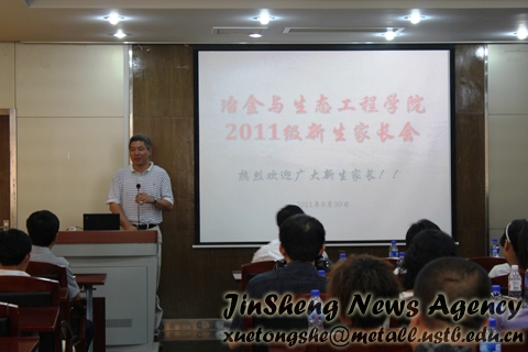 新生家长会在冶金楼青钢报告厅举行。学院院长朱鸿民教授与党委副书记王春义老师参与并主持此次家长会。此外,学院教务处王丽娟老师也出席了本次会议。