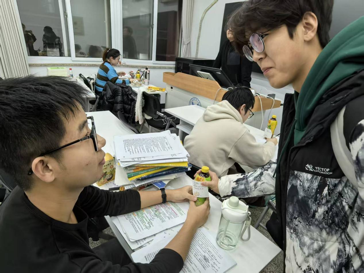 由两党支部牵头,25级新生合力筹备祝福礼。大家挑选饮品,分工手写祝福便利贴,将“淬火成钢,研途必胜”“功不唐捐,上岸稳赢”等寄语贴于瓶身。从选品、提笔到粘贴,每一步都承载着真心,让暖意伴学长学姐研途前行。以满怀的尊敬与祝福驱散冬日寒意,为追梦路上的冶金学子注入力量。