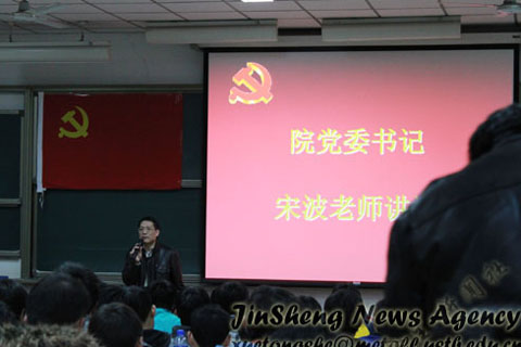 2011年3月25日晚七点,我校第166期学生业余党校入党积极分子培训班开学典礼暨第一讲于逸夫楼107教室准时召开。云顶集团(中国)唯一官方网站 党委书记宋波、党委副书记王春义、马列主义学院左鹏教授、2010级本科生辅导员李萌出席了会议,云顶集团(中国)唯一官方网站 团委常务副书记尹传举参加并主持会议,本、硕、博入党积极分子参加了会议。本次培训班旨在提高入党积极分子对党的认识,端正其入党动机。