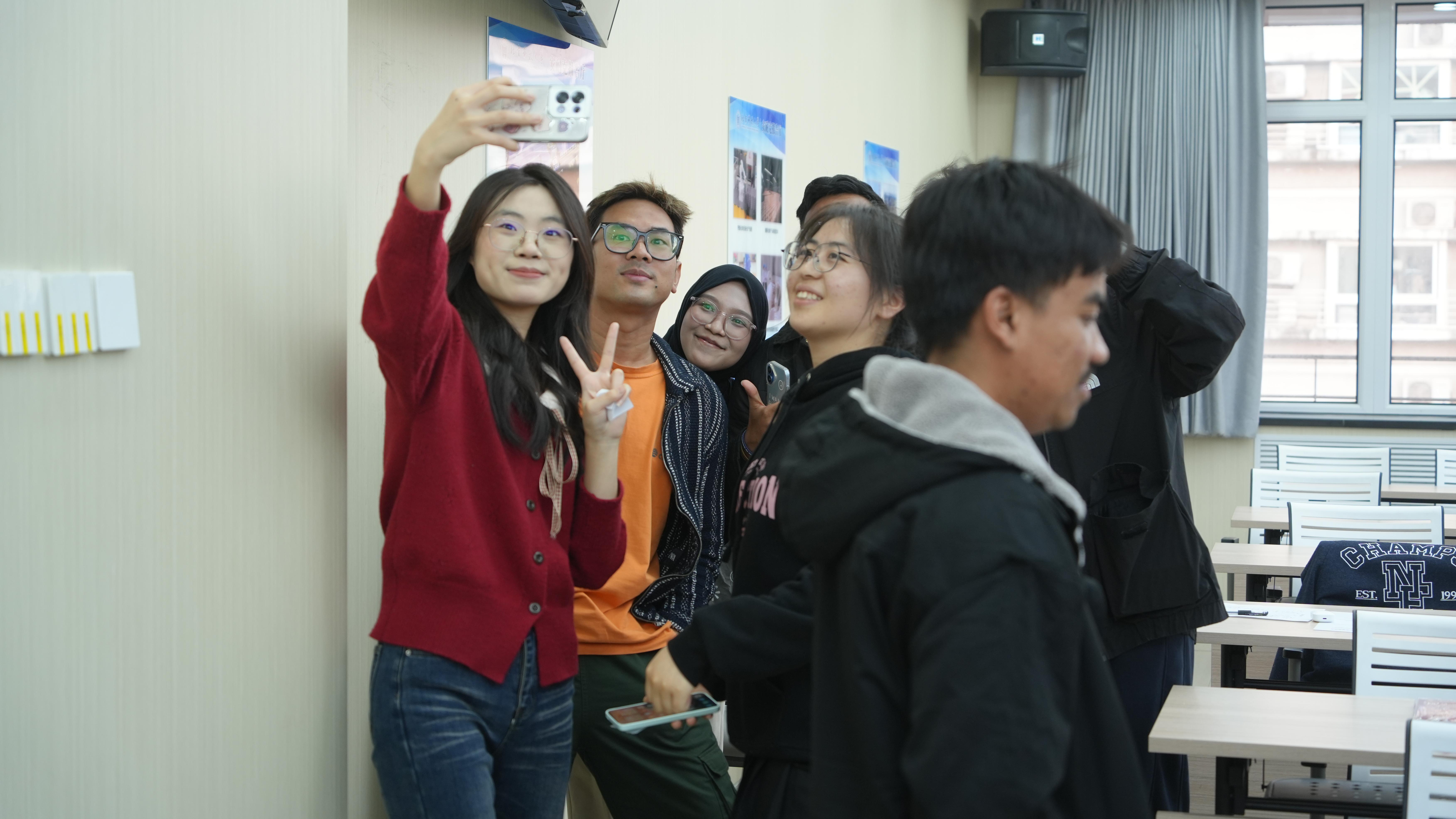研究生代表冯金阳同学分享了自身在学业科研与校园生活方面的经历与感悟,印尼留学生也就各自的学习生活、校园体验进行了交流。