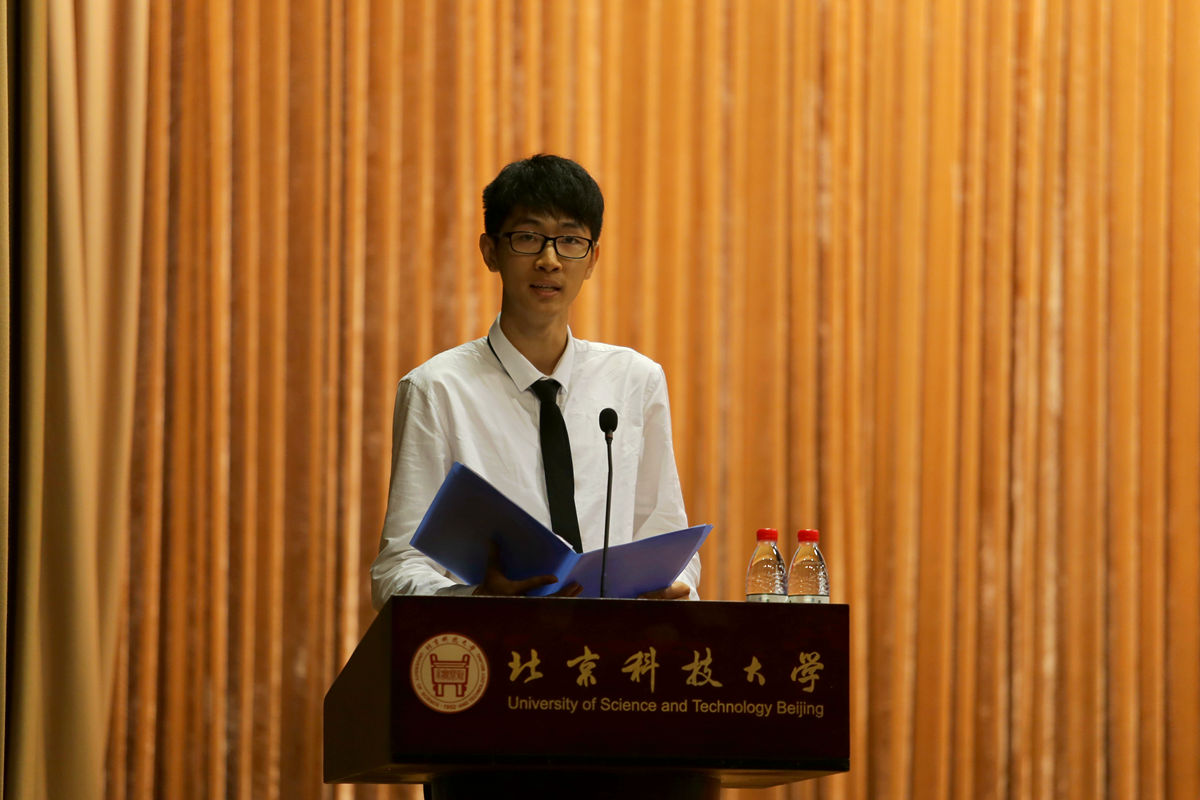 新生代表本科16级吕彬玉同学的发言表达了对大学的向往和进入北科大的欣喜,更是表达了他们努力的决心。学院研究生会主席杨平同学通过“查文献”这一研究生阶段必经环节向新生阐述科研学习中务实的重要性。
