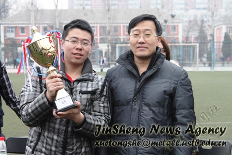 赛后,院体育部举行了足球赛的颁奖仪式,王春义为冠、亚、季军颁发了奖状、奖杯及奖品。队员们进行了合影留念。至此,此次振冶杯足球赛圆满结束。