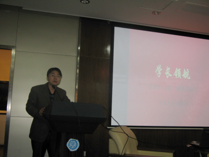 研究生会发起并组织的“学长领航”系列访谈节目在青钢报告厅举办,这也是系列节目的第一场。本次的领航船长是校“十佳学术之星”赵宏博学长。学院党委副书记董春阳老师出席并致辞。同时出席的嘉宾还有09级研究生辅导员李宁。