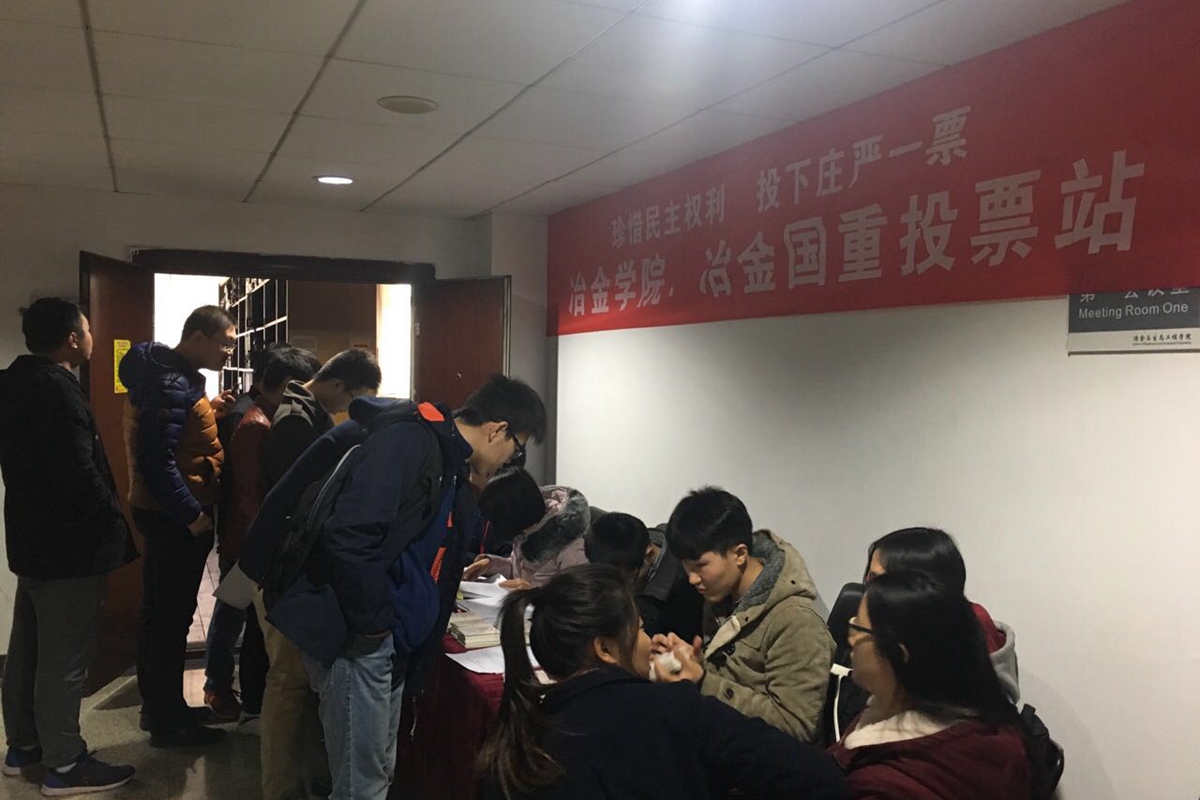 云顶集团(中国)唯一官方网站 准时于24:00停止投票,在监票人监督下,封闭票箱,粘帖封条,及时核对投票人数及剩余票数。并将投票箱送至建龙报告厅,北科大选区办组织统一开箱验票。