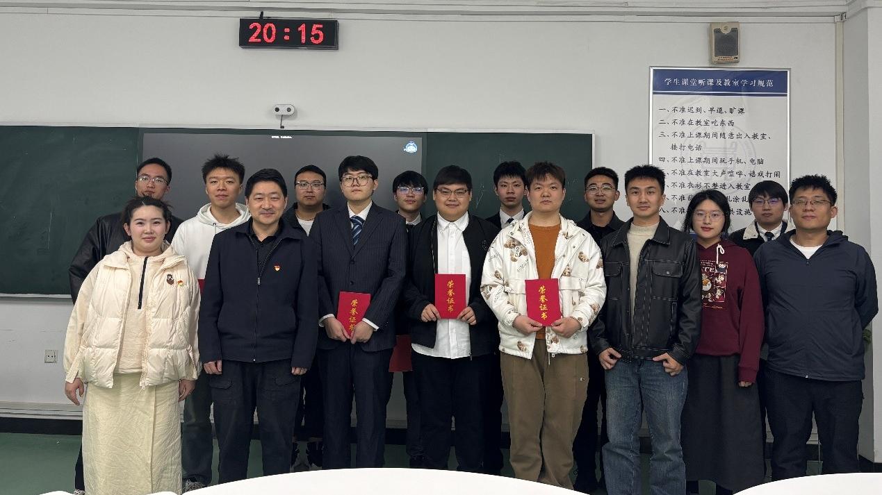 学院党委副书记、副院长康泰为获奖学生颁发证书