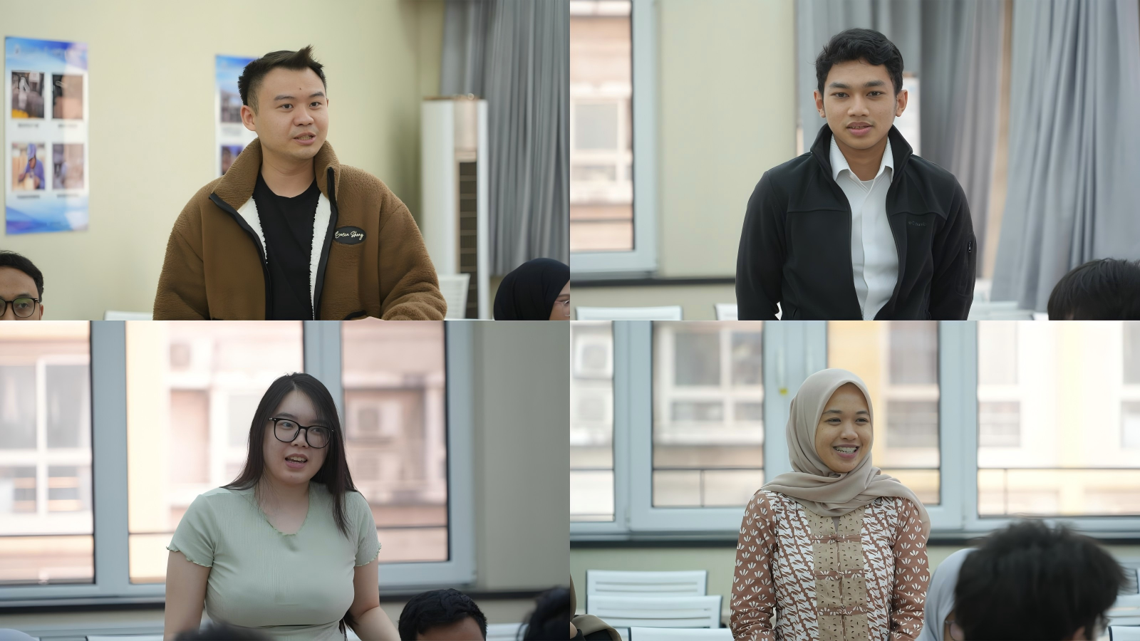 研究生代表冯金阳同学分享了自身在学业科研与校园生活方面的经历与感悟,印尼留学生也就各自的学习生活、校园体验进行了交流。
