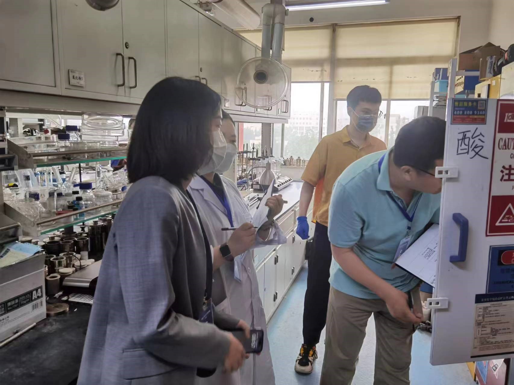 上午8点,专家和各单位分管领导、安全秘书按照路线开始检查。检查内容为对照《实验室危险化学品安全管理规范》(DB11/T 1191.2普通高等云顶集团)要求,重点检查实验室危险化学品安全管理的组织、制度、人员培训、安全设施设备、采购管理、储存管理、使用管理、危险废物管理和应急管理等内容,进一步摸清涉危使用实验室的基本情况和管理现状,查找实验室危险化学品安全管理中的薄弱环节和突出问题。