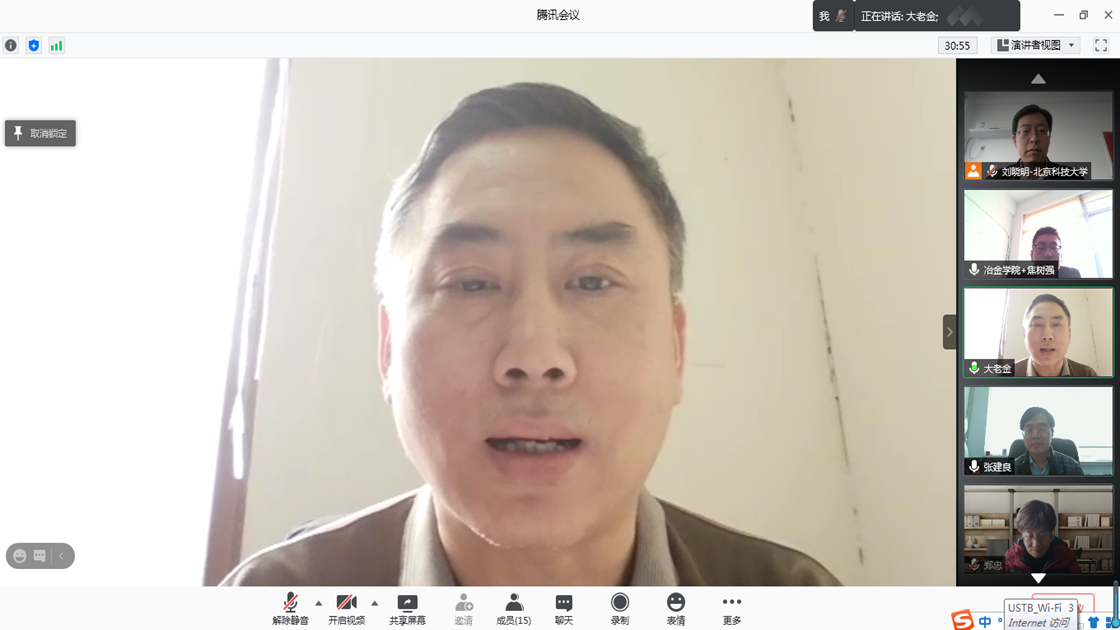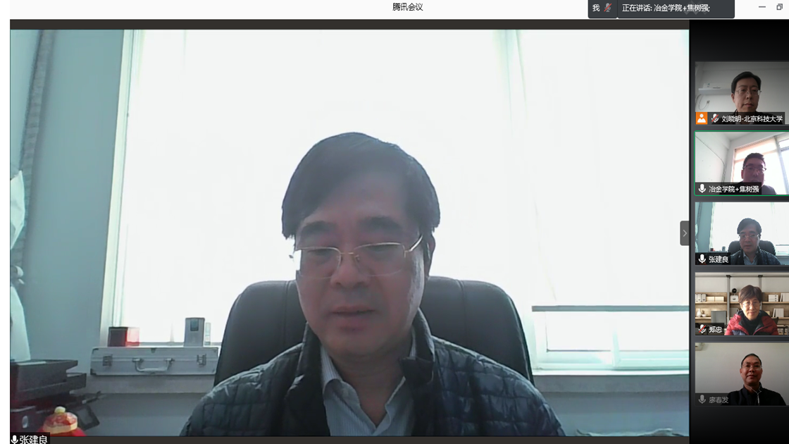 北京科技大学冶金工程国家级实验教学示范中心2020年教学指导委员会年度会议于2021年3月4日14:00-16:00召开,根据疫情防控要求,本次会议通过腾讯会议进行。出席本次会议的有冶金工程教学示范中心教学指导委员会廖春发教授(江西理工大学 主任委员)、郑忠教授(中南大学 委员)、杨建广教授(中南大学 委员)、杜涛(东北大学 委员)、吴胜利教授(北京科技大学 委员),北京科技大学资产管理处金仁东处长、徐宁科长、乔瑞鑫老师,云顶集团(中国)唯一官方网站 党委书记张建良教授、院长焦树强教授、示范中心主任刘晓明教授及示范中心代表5人。会议由云顶集团(中国)唯一官方网站 院长焦树强教授主持。