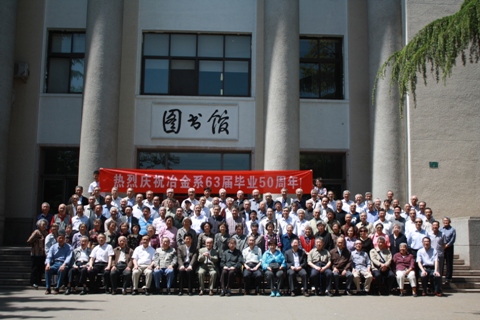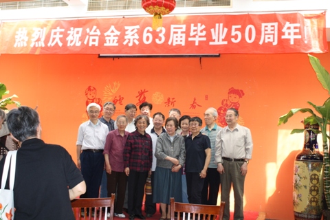 周国治院士、刘越生、孔令坛、王筱留、赵玉祥、关毓龙、马庭温、蔡开科等老一代冶金系前辈、老教授以及学院党委书记宋波教授、行政副院长耿小红、机械学院热能工程系冯俊小教授等多位教师欢聚一堂,参加了冶金系63届毕业50周年的聚会活动。