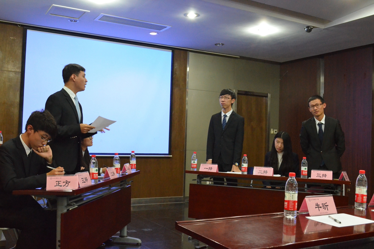首先由往届优秀辩手进行辩论表演赛,辩题是“孩子被打了是应该打回去还是应该告老师”。正反双方精彩的从立论与质询,一对一对辩,盘问及小结,自由辩论,总结陈词等方面向大一新生展示了辩论赛的全过程。双方辩论激烈,技巧运用娴熟,正方紧抓标准一条主线,步步逼问,而反方本着对孩子好的原则积极应辩,辩论中不时有幽默的反击,现场爆出阵阵掌声和笑声。