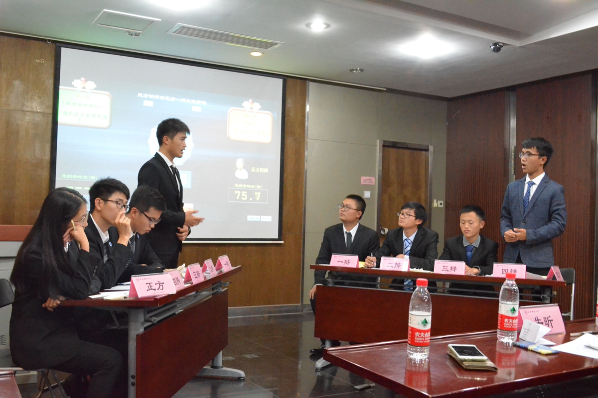 辩论赛第一场由来自冶金1605班的“爸爸说的都队”和冶金1606班的“真鲤队”进行“现代社会更需要通才还是专才”的答辩。第一次参加答辩,双方不免有些紧张。正方开篇紧扣中国梦,表明现代社会更需要融会贯通的通才,而反方质问正方的答辩标准,以及对通才专才下定义为正方设陷。同时反方拿高精尖领域的例子来反驳,把专才比作金字塔,强调正方不能只看到塔尖。正反双方慷慨激昂,咬文嚼字,对精与专的定义产生异议,进行激烈的辩论。正方举出科大从当年的钢铁学院冶金一家独大变为今天的北京科技大学巧妙设问,而反方则从神十一的成功发射机智应答。双方例子频出,结论常下,辩论场面异常激烈。