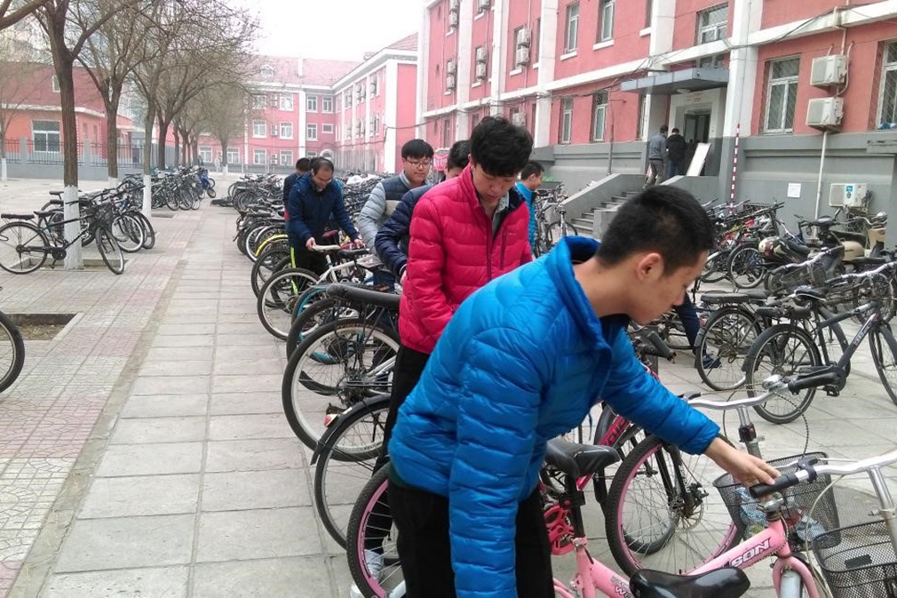 12月5日到9日,冶硕1601班、1603班、1605班的全体初级党校学员在校园内展开了摆放自行车的志愿活动。