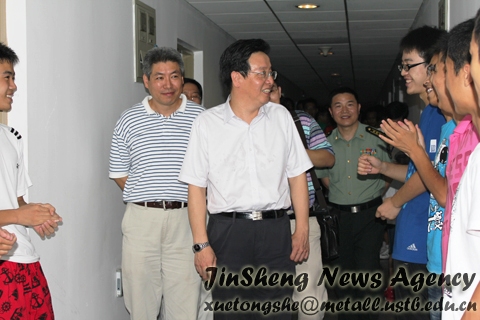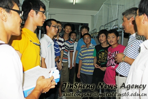 在新生宿舍里,领导老师们都平易近人,亲切地和同学们聊天,了解他们家乡的情况、刚进大学的感受等。随后学院领导还着重调查了同学们高考志愿的相关情况,并以此为突破口为新生们介绍冶金专业的方方面面情况和信息。面对院长的亲切问候,同学们虽然还有点害羞和紧张,但非常珍惜这样难得的近距离交流机会。大家都踊跃地和老师们交流自己的想法和对大学的认识,现场欢声笑语不断,同学们也领略到了校院领导们的风采。
