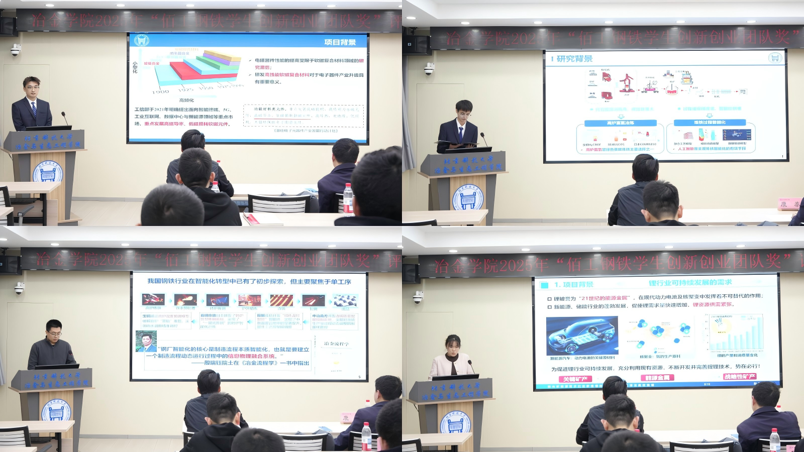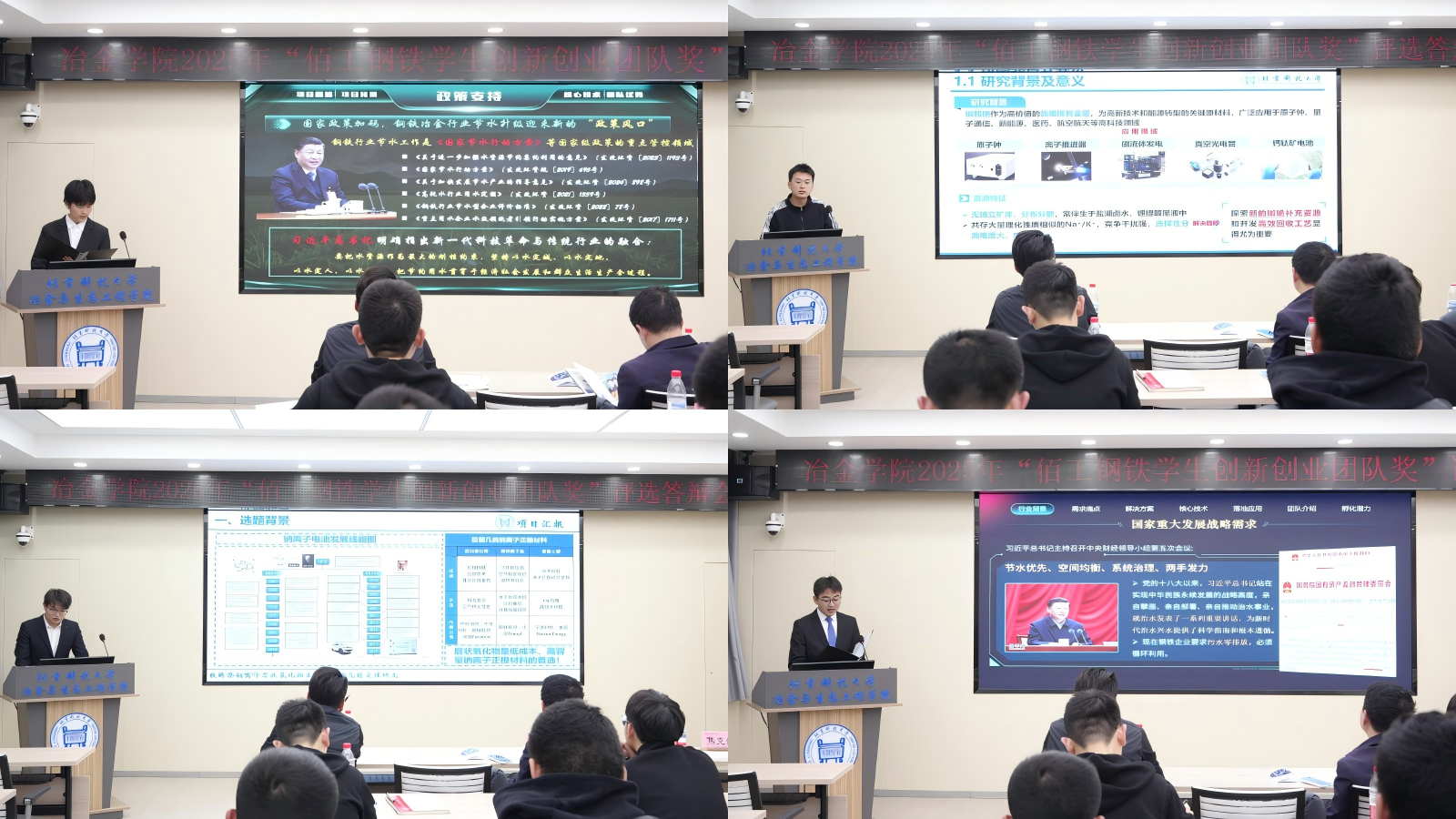 12月17日,评选答辩会在冶金楼616举办,学院党委副书记、副院长康泰,校团委青年成长服务中心副主任牛小萌,钢铁冶金系焦克新,有色金属冶金系刘玉博,物理化学系田俊行,储能科学与工程系李叶晶出席活动并担任评委,40余名本研学生参与、观摩。