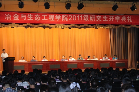 2011级研究生开学典礼在教工活动中心隆重举行。开学典礼由院党委副书记王春义主持,院党委书记宋波、副院长张建良、郭占成、耿小红,钢铁冶金系主任成国光、冶金物理化学系主任邢献然、有色冶金系主任薛济来、生态科学与工程系副主任李宏煦、冶金与材料史研究所副所长李秀辉出席了开学典礼。