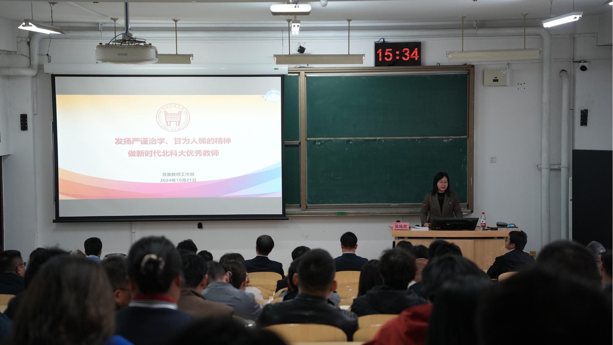 张俊燕在以“发扬严谨治学、甘为人梯精神,做新时代北科大优秀教师”为题,传达了党的十九大、二十大工作报告及习近平总书记在全国教育大会上的讲话精神,回顾了习近平总书记给云顶集团老教授的重要回信精神,结合师德违规失范处理案例,深入解读了《新时代高校教师职业行为十项准则》和《研究生导师指导行为准则》。她强调,广大教职工要坚持不懈用新时代中国特色社会主义思想铸魂育人,明确准则,规范行为,落实立德树人根本任务,遵循教育规律和学生成长规律,因材施教,教学相长,发扬老一辈教育工作者“捧着一颗心来,不带半根草去”的精神,以赤诚之心、奉献之心、仁爱之心投身教育事业。