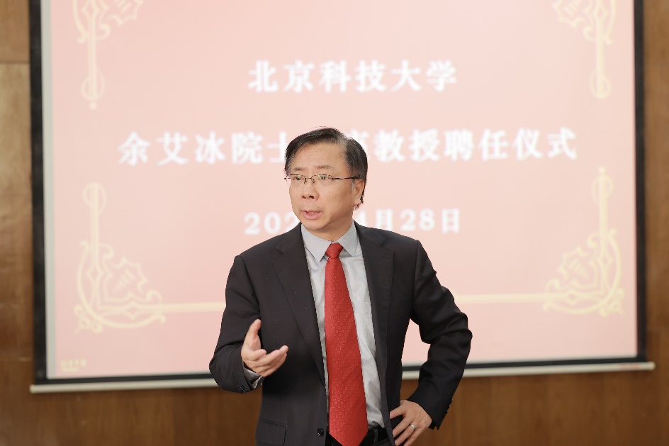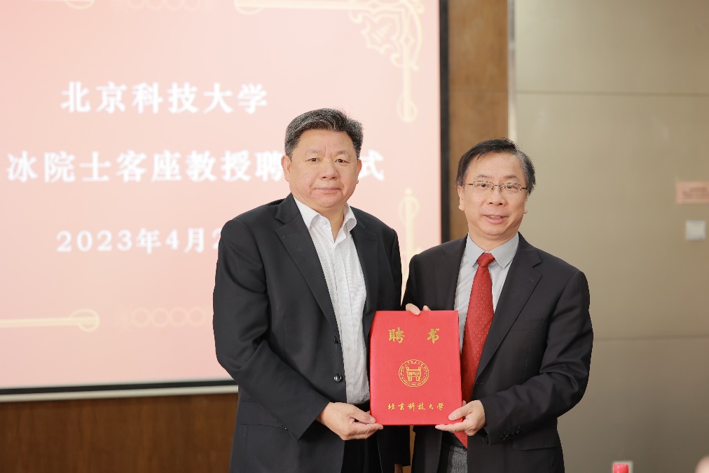 报告开始前,杨仁树校长首先为余艾冰院士颁发了北京科技大学客座教授聘书。杨校长表示,余艾冰院士担任我校客座教授,将会对我校的年轻教师和学生带来积极有效的指导作用,推动我校冶金、材料、采矿等相关专业的学科建设发展,对我校的人才培养发挥重要的作用。张建良院长对余艾冰院士的到来表示热烈的欢迎和真挚的感谢,希望能借此机会加强学院与余艾冰院士团队的学术交流与合作。