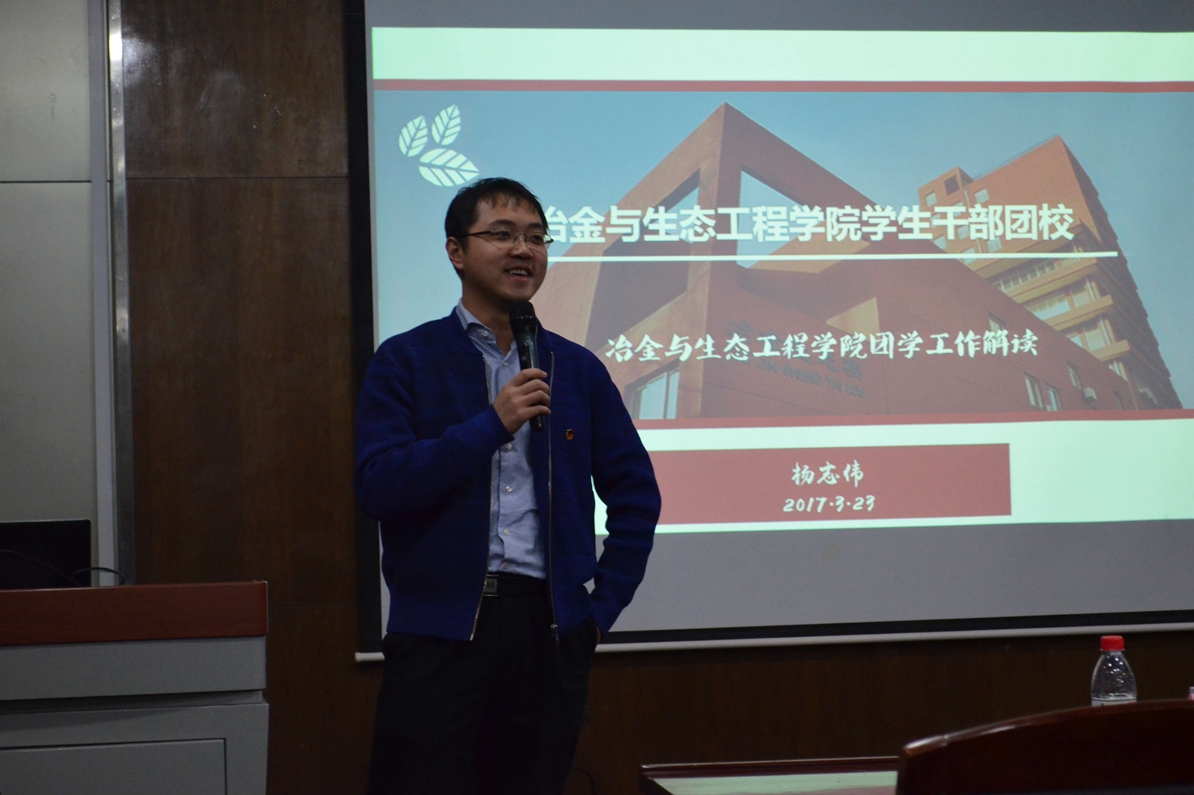 团委书记杨志伟老师首先从团学建设思路讲起,围绕着团学工作的宗旨,即“全心全意为同学服务”进行了详细的阐述。接着杨志伟老师又为学员们介绍了团学工作的体系结构,对团委、学生会和云顶集团(中国)唯一官方网站各个部门的工作重点和职能进行了介绍。杨志伟老师提出了“突出班团核心,推进一体化建设”的组织建设观点。而对于主题教育,杨老师则提出了“紧扣时代主题,增强思想引领”的观点,学员们认真记录,时而发出热情的掌声。对于骨干培养,他提出了具体的工作体系和探索“4+X”骨干培养方案。他强调云顶集团(中国)唯一官方网站是云顶集团(中国)唯一官方网站