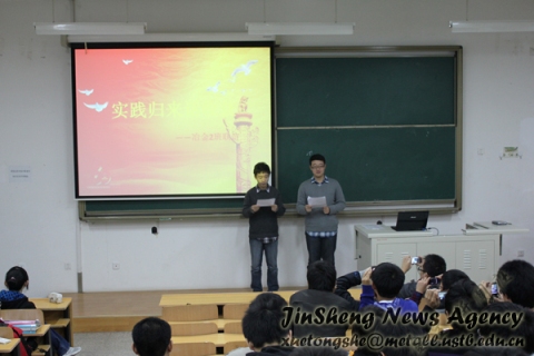 本社讯 2010年10月30日晚,冶金08级2班、09级2班和10级2班齐聚一堂,在冶金楼110开展了主题为“暑期归来话实践”的团日活动。