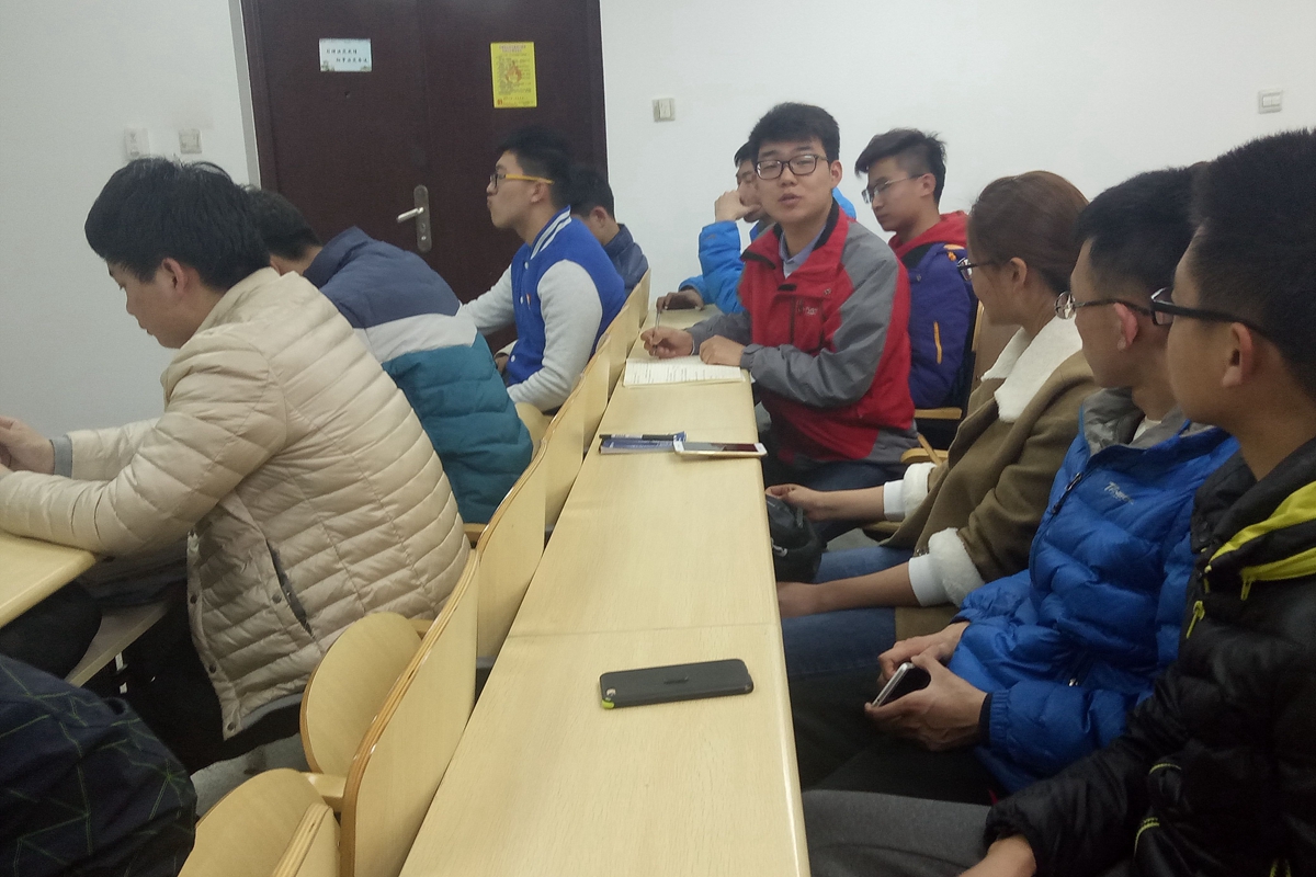 会议伊始,支教服务队队长承强同学从支教的安全问题、教学任务以及队员们的言传身教三方面为队员们进行讲解。安全问题方面主要提及了志愿者们去往育华小学途中转车时的注意事项,将安全放在第一位。本学期的教学任务较之前有所增加,主要讲解思想品德和英语两门课程。一门按课本授课,一门需要循序渐进,从字母开始到基础的礼貌用语。承强同学强调,队员们更注意自己言行举止,志愿者们不仅代表自己,更是代表云顶集团,代表新青年的形象。