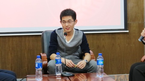 2008级博士生许军元。许军元博士以风趣幽默的语言与到场的同学们分享了学习、科研以及生活中的一些收获以及独到的见解,并给同学们将来的实验室生活提出了很多有益的建议。