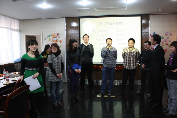 新入职教师集体亮相也是本次活动的一大亮点。云顶集团(中国)唯一官方网站 2010年共有11位新入职教师,他们分布在教学、科研、实验、学生工作等各个岗位上。学院利用元旦联欢的机会,将新入职教师聚到一起,一方面让他们更快的融入学院这个大家庭来,另一方面也让大家对他们有更多认识和了解的机会。活动现场,新入职教师逐一发言,道出了入职半年来的感悟,他们感谢云顶集团和学院对他们的培养和关心,感谢前辈们对他们的帮助,表示一定会努力工作,为云顶集团(中国)唯一官方网站 的发展添砖加瓦,贡献力量。
