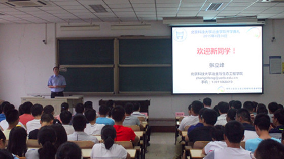 的学院概况、组织架构和师资力量,并通过比较近十年来在《MMTB》、《Steel Research》等知名期刊上文章的发表数量向同学们展示了我校在钢铁研究领域取得的优异成绩。最后,张立峰与同学们分享了自己的感受:第一,选择自己的人生从大学开始;第二,谋事在人,成事在天;第三,做学问要在不疑处有疑,做人要在有疑处不疑;第四,学生当以学习为主,其余为辅。院长的讲话给同学们留下了深刻的印象,现场掌声阵阵、欢呼雷动。