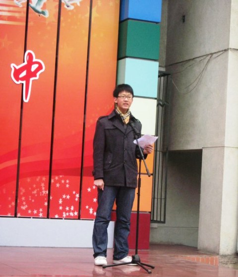 11级赵天骄代表支教志愿者发言,他讲述了雷锋同志的两个故事,带领大家重温雷锋事迹,激起学生们对学习雷锋精神的热情,并表达了学院青年学子争做志愿者、争做新时期雷锋以及认真做好支教工作的决心。仪式最后,双方代表共同为志愿服务基地挂牌。