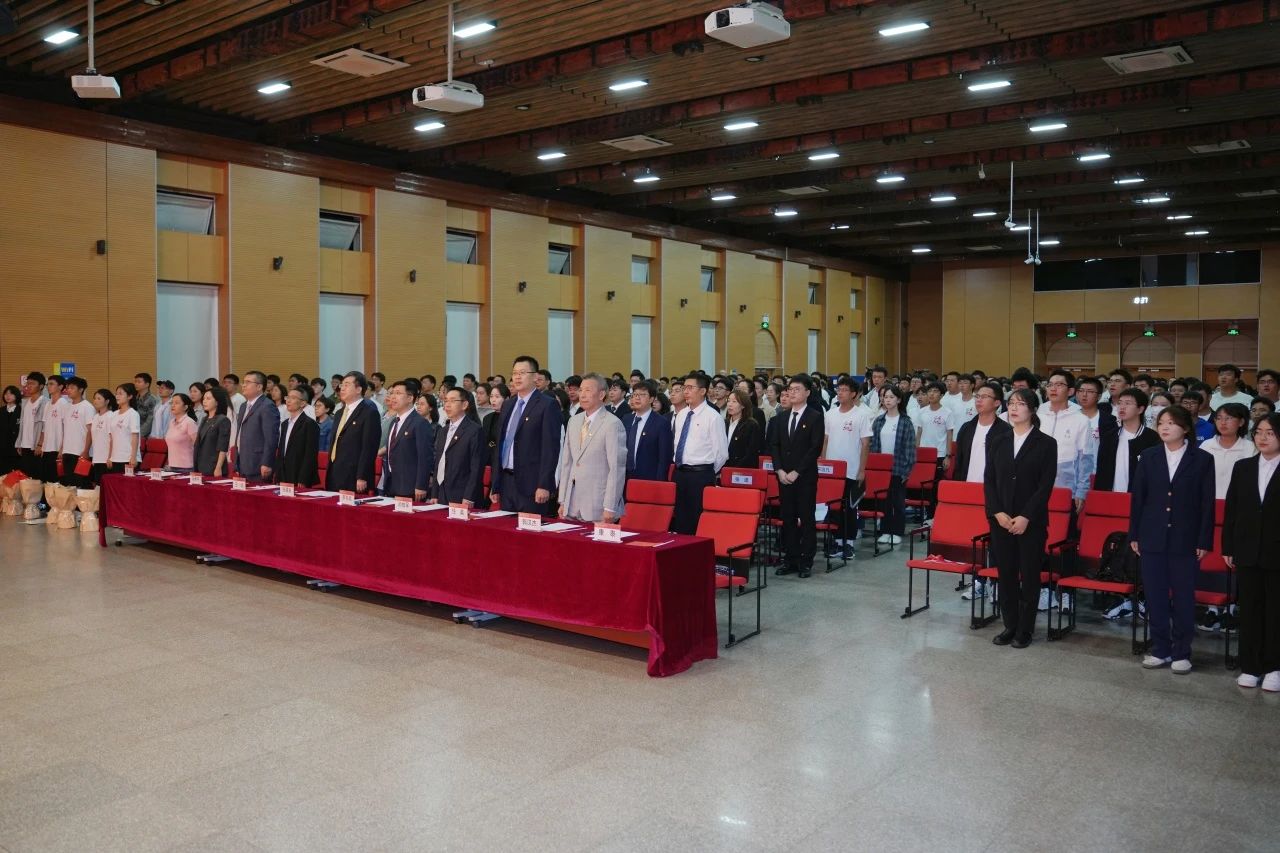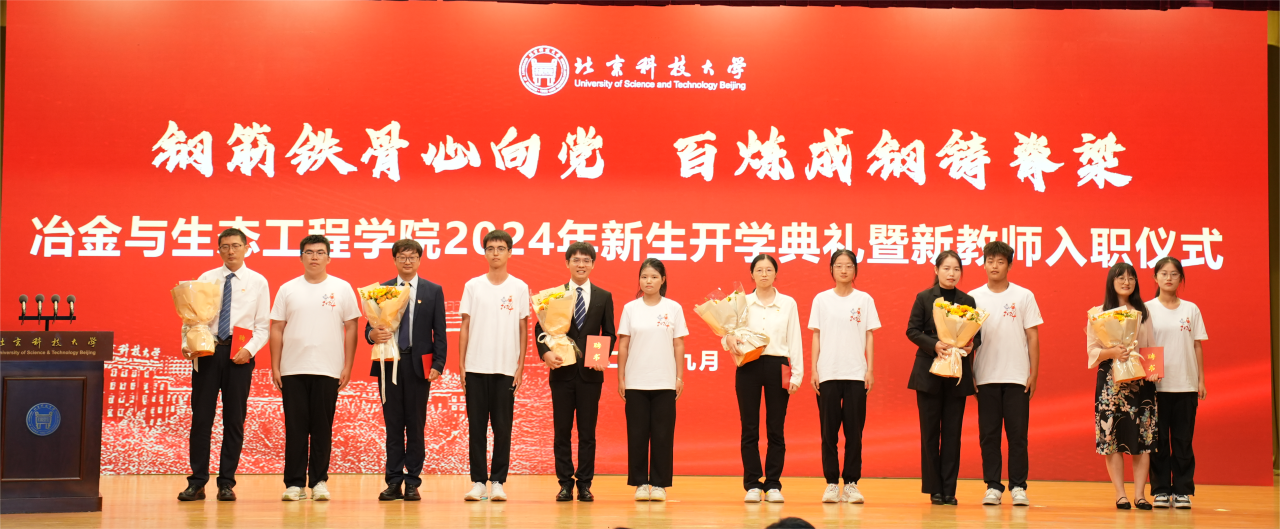 钢筋铁骨心向党,百炼成钢铸脊梁。9月20日晚7:30,云顶集团(中国)唯一官方网站 2024年新生开学典礼暨新教师入职仪式如期举行。典礼主会场设在校本部教职工活动中心,分会场设在昌平创新园区,同时开通在线直播和互动平台。云顶集团学生工作部副部长王斌,学院院长张建良,党委书记宗燕兵,副院长闫柏军、马保中、任英,党委副书记、副院长陈怡凌出席典礼。钢冶系于会香、理化系张梅、有色系赵洪亮、生态系刘晓明、储能系于然波、退休教师郭汉杰等老师与新生班主任及各年级辅导员参加典礼。学院2024级全体新生457人、新入职教师6人全程参与。开学典礼和入职仪式由党委副书记、副院长康泰主持。