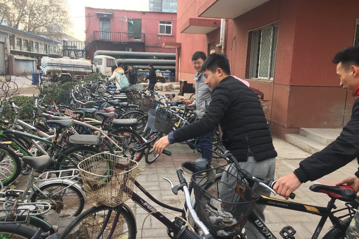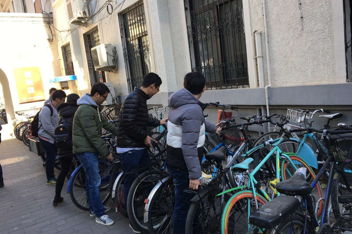 12月5日到9日,冶硕1601班、1603班、1605班的全体初级党校学员在校园内展开了摆放自行车的志愿活动。
