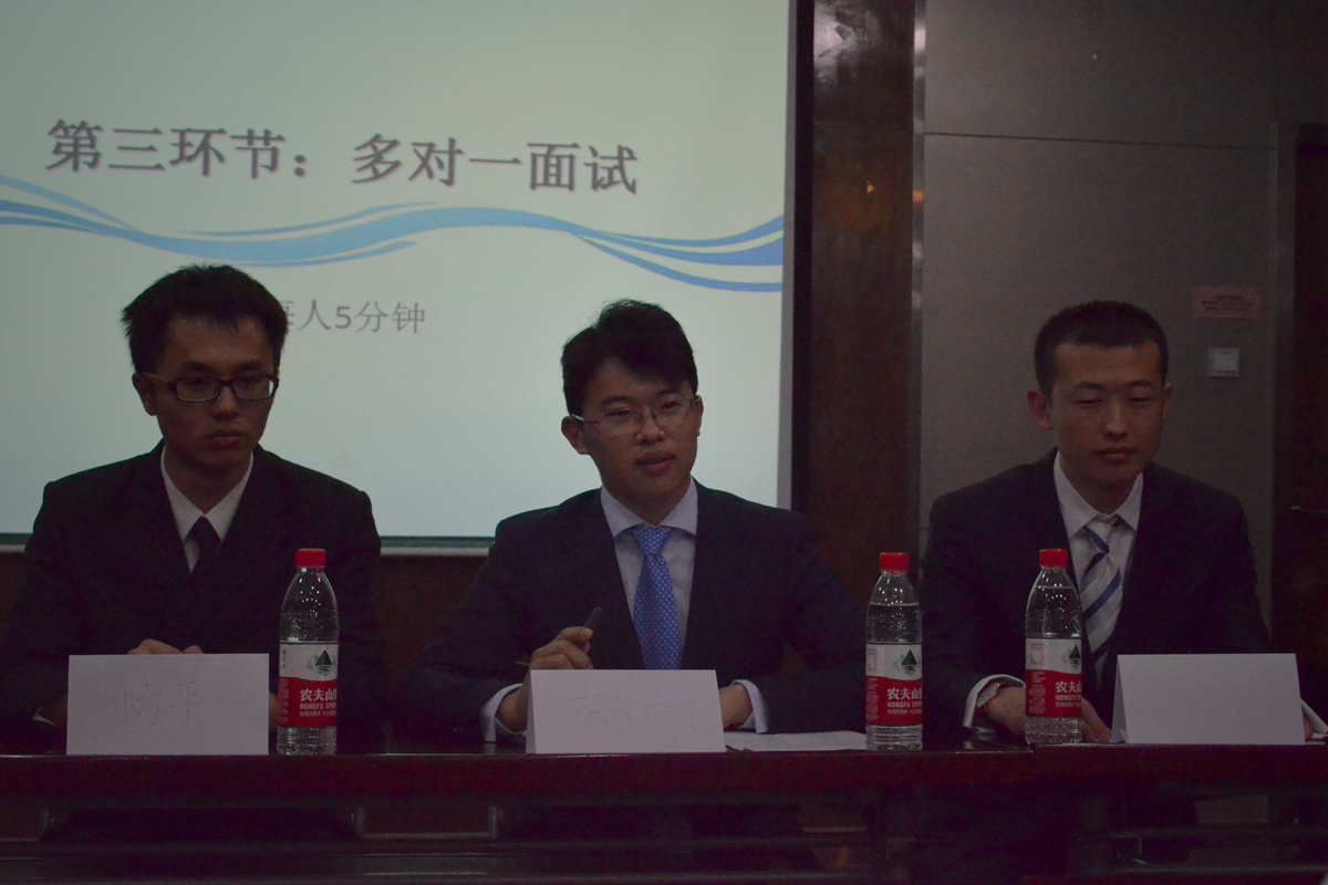 多对一面试环节由魏星老师主持。各位评委老师根据选手们的基本情况,结合模拟求职岗位要求、自我介绍与无领导小组讨论环节的表现情况进行提问,制造压力氛围,考查选手的思维水平、应变与表达能力。“你认为管理培训岗位的具体工作是什么”、“如果你是理科教师,怎样为学生讲解化学平衡原理”、“你在科研中遇到的最大困难是什么,如何解决的”,面对面试官的发问,同学们实事求是,沉着应对,展现出自己的课业学习、科研学术、学生工作、社会实践方面的能力。