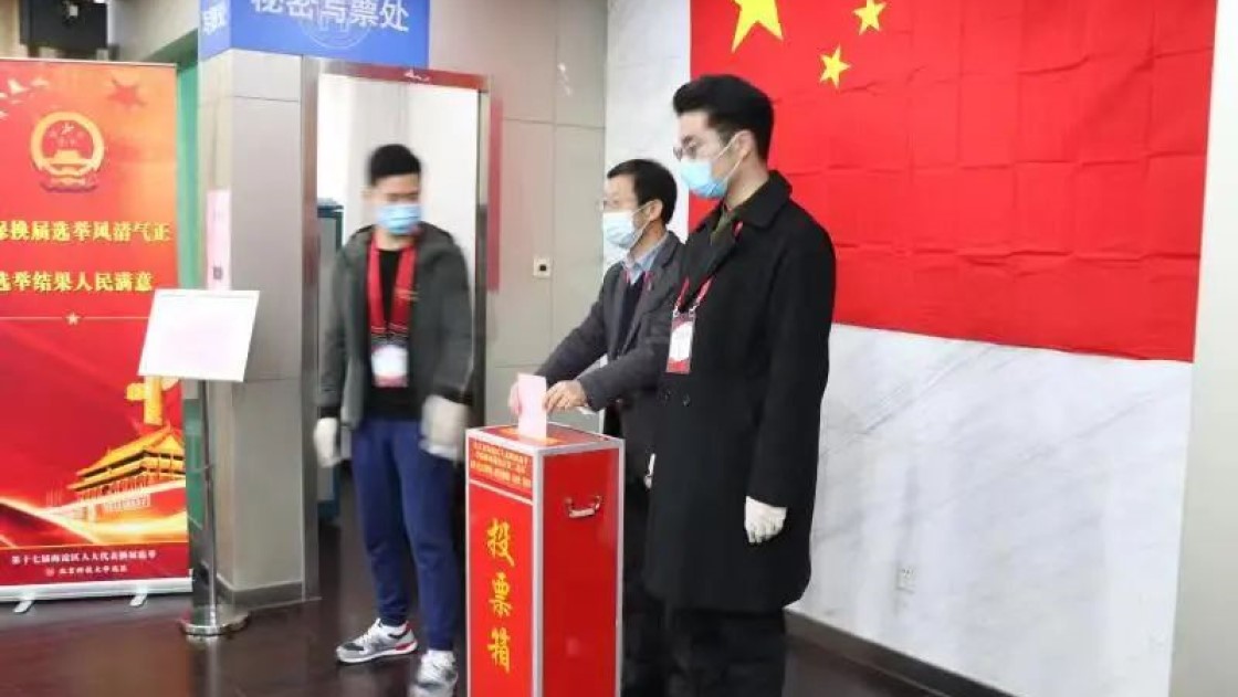 2021年11月5日是北京市海淀区第十七届人大代表换届选举投票日。早上8时,北科大选区云顶集团(中国)唯一官方网站 分站工作组全体人员到位,检查票箱,核对疫情防控相关物资,做好各项准备工作。此次换届投票,云顶集团(中国)唯一官方网站 分站覆盖云顶集团(中国)唯一官方网站 、钢铁冶金新技术国家重点实验室、科技史与文化遗产研究院3家单位,共1561位选民,投票时间为9:00~21:00。